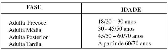 Constatou-se através da análise das fichas de acompanhamento das alunas no período de janeiro de 1998 a dezembro de 2002 uma baixa rotatividade destas e uma progressão no número de indicações junto ao grupo de convívio, um predomínio de procura e permanência por alunas das faixas etárias entre adulta média e adulta posterior conforme Weineck (2000) Tabela II.