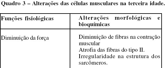 A seguir, verificamos algumas das modificações e alterações celulares, principalmente do tecido muscular devido ao avanço da idade, após a fase adulta.