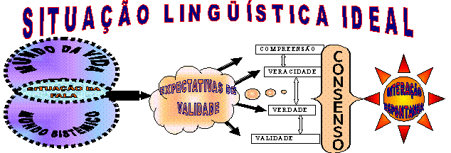 Segundo nosso entendimento e conforme Ilustração 1, tanto no mundo da vida, quanto no mundo sistêmico, são necessárias situações de fala para o estabelecimento das comunicações entre os sujeitos envolvidos, sustentando a mobilização para as ações desenvolvidas nas várias dimensões do nosso cotidiano. Toda situação de fala gera expectativas de validade, ou seja, todo locutor pretende que seus argumentos convençam o interlocutor. Para que ocorra a interação espontânea é preciso que o conteúdo das falas seja consensado entre os sujeitos da comunicação, em termos de: compreensão (entendimento do idioma, das palavras, dos significados, dos códigos,...); veracidade (a fala está fundamentada em argumentos corretos, o sujeito não está enganado ou mal informado...); verdade (não há hipótese de que o sujeito esteja mentindo, enganando...); validade (as regras e normas relativas ao tema estão sendo seguidas...).