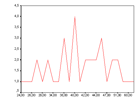 A idade mínima dos alunos foi de 24 anos e a máxima de 63 anos sendo a média em torno dos 40 anos.