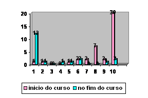 Na percepção da mudança obtida (final do curso) mensurada pelos alunos obtivemos registros de escore 10 em: mudança de qualidade 40, 0%, mudança do conhecimento 53,3 %, mudança do salário 6,7% , invertendo praticamente a expectativa inicial e a mudança de satisfação de 60,0 %.