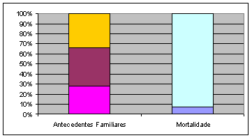 Gráfico 3 - Distribuição da situação fisiológica: antecedentes familiares e índice de mortalidade dos pacientes com insuficiência cardíaca congestiva, tratados no Hospital das Clínicas/UFG-GO, no índice da investigação.