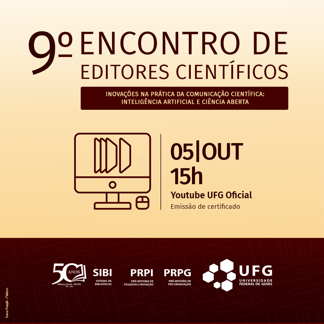 Acontece, no dia 05/10, das 15h às 18h, o 9º Encontro de Editores Científicos. O evento, que ocorrerá de forma online no Youtube UFG. Leia mais