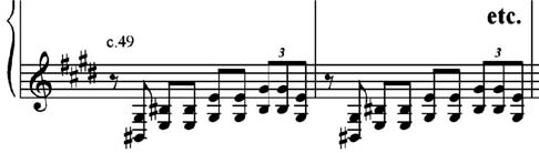 Exemplo 19: Baixo arpejado e melodia de caráter improvisatório no Noturno em Fá sustenido maior Opus 15 n.º 2 de Chopin