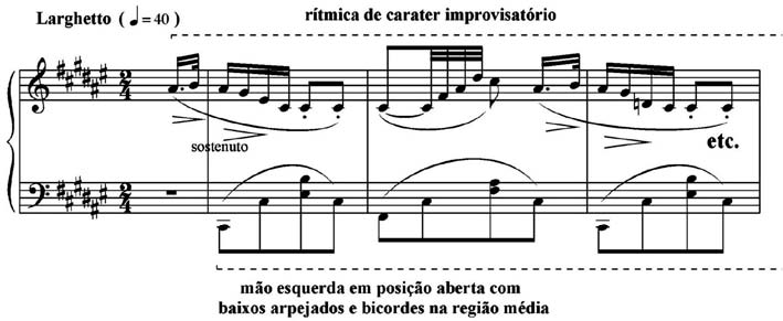 Exemplo 20: Baixo arpejado e melodia de caráter improvisatório no moderato chopiniano de A Sertaneja de Brasílio Itiberê.