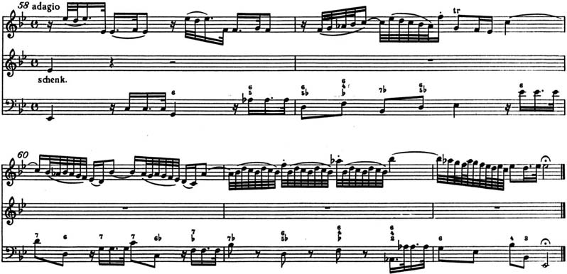 Instrumento solista: Oboé Voz: Soprano Andamento: Adagio, Un poco allegro, Adagio Fórmula de compasso: C, 3/8, C Tonalidade: EbM. Segundo Mattheson no parágrafro 19 do seu tra