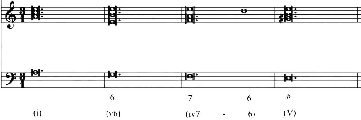 Durante todo o refrão, o baixo apresenta um movimento descendente que pode ser associado ao baixo em tetracórdio menor do Lamento della Ninfa de Monteverdi, um dos padrões que caracterizavam os lamentos deste período.