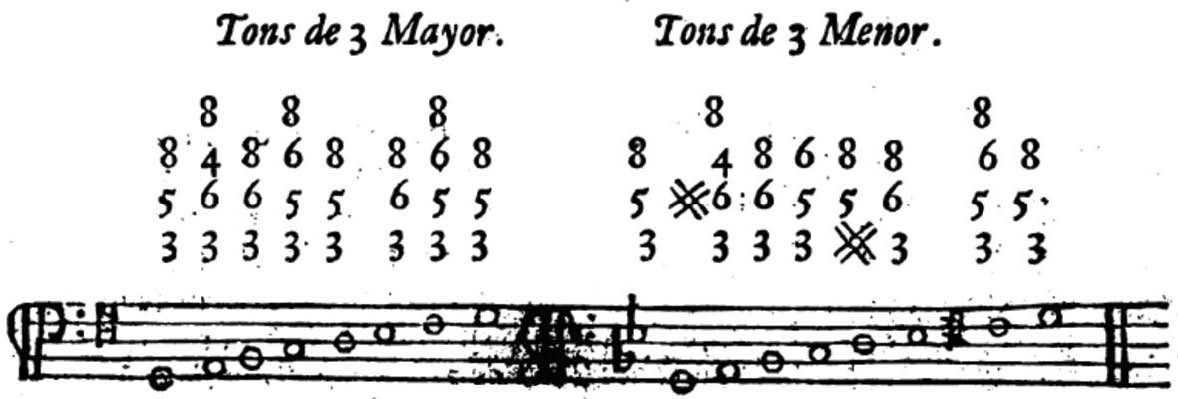 Representando o momento mais avançado da teoria do baixo contínuo, o tratado de Domingos Varella (1806), difere dos outros aqui analisados em um aspecto bastante relevante quanto à compreensão da harmonia: os acordes são apresentados já segundo a teoria das inversões, chegando a mencionar Jean-Phillipe Rameau (1682-1764) 2. No entanto, ao escrever sobre o acompanhamento, Varella apresenta a teoria do baixo contínuo da forma como a vemos nos outros tratados, ou seja, com os acordes pensados como intervalos a partir do baixo.