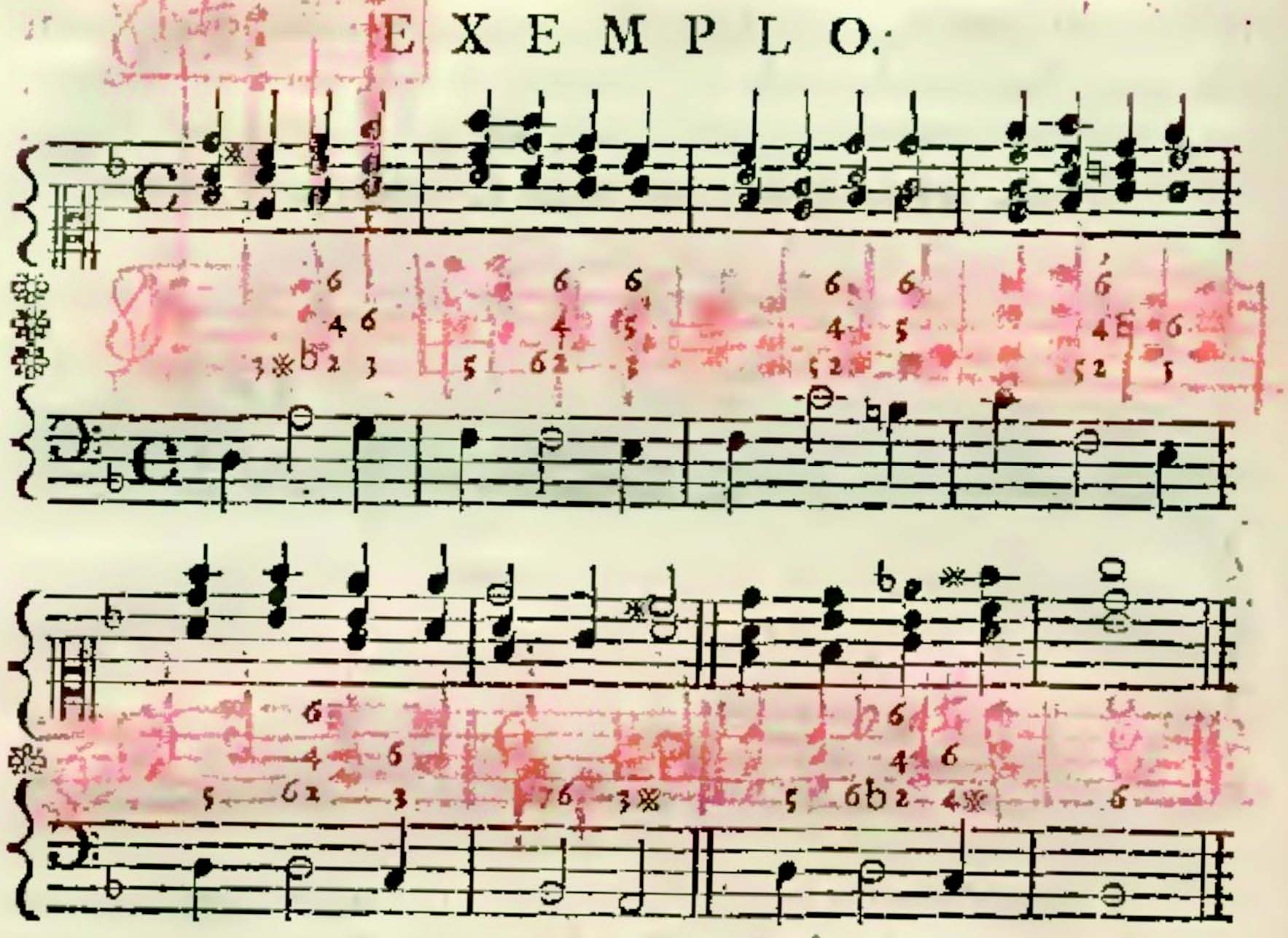 Entre as fontes do século XVII e das primeiras décadas do século XVIII, é comum que não se encontre muito mais que as informações essenciais, relativas ao entendimento das cifras, ao bom encadeamento e à correta dedução das harmonias. Como afirma Giulia Nuti: “Pouquíssimos dos primeiros tratados impressos falam sobre como realizar o baixo contínuo numa situação prática, tendendo ao invés disso a se concentrar em descrever princípios harmônicos. Habilidades de performance eram ensinadas oralmente” (NUTI, 2007, p. 2) 1