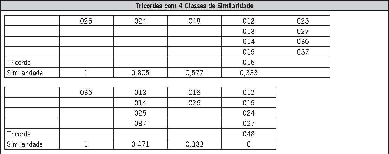 Tabela 2: Tabelas de similaridade entre tricordes e grupos de classes de similaridade.