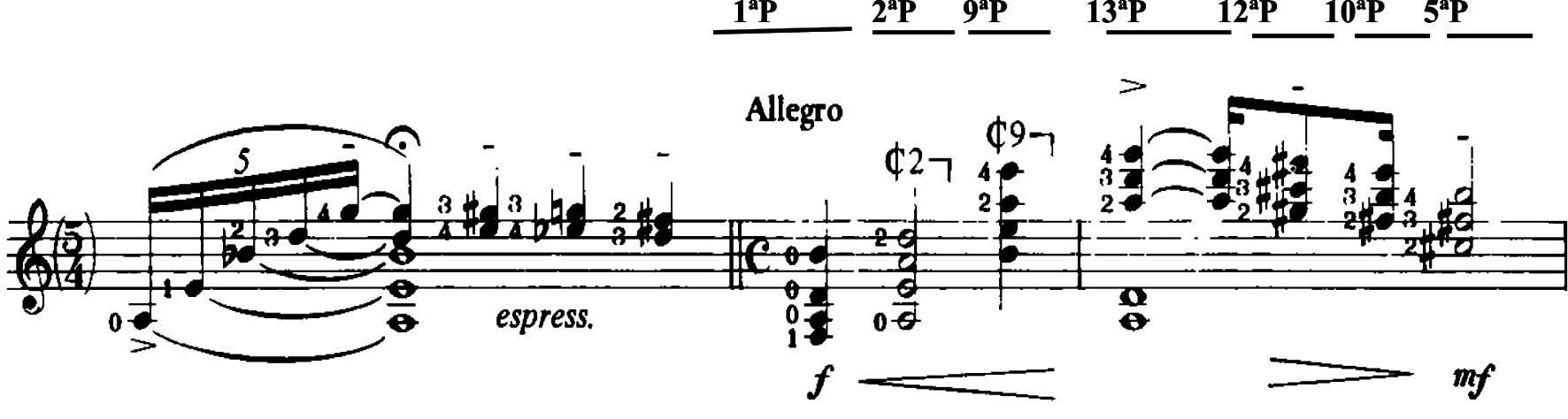 7 Na Dissertação de Mestrado que deu origem ao presente artigo, analisamos a totalidade das demandas presentes dos Sete Estudos. Porém, como isto excederia o escopo deste trabalho, tivemos que selecionar apenas algumas. Para mais informações ver: OLIVEIRA, C,B. “Os Sete Estudos Brasileiros para Violão Solo de Carlos Alberto Pinto Fonseca: Uma Abordagem Analítica Sobre Demandas Técnicas”.