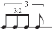 A separate convention commonly used in modern western music notational prac- tice suggests that the number of beams/flags for borrowed values are based upon gener- ally agreed upon ratios, such as three in the space of two (3:2) having the same value. In Example 6 I have identified a few common ratios (see Example 6).