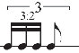 Example 10.b: Graphic representation of Example 9, in which a nested triplet (3:1) in presented within a larger triplet, which is then extrapolated out across a full quarter note on the middle and final 8ths.