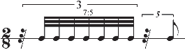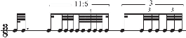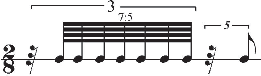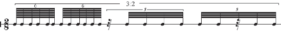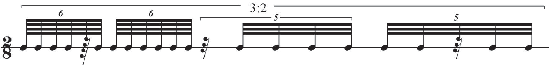 1 | 2 | 3 | 4 | 5 | 6 | 7 | 8 | 9 | 0 | 1 | 2 | 3 | 4 | 5 | 6 | 7 | 8 | 9 | 0 | 1 | (7:3 under 5:4 = 20.5, needing 64th note values) |