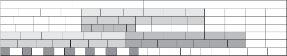 • The 5th row takes two steps back and shows the original 14 note division of the half note.