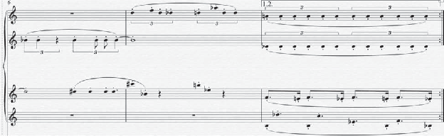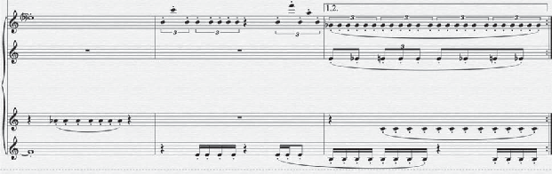Figura n.4: Excerto de Cadência Textural I que destaca o processo gradual de aproximação do padrão rítmico de Clapping
