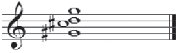 um acorde composto no qual os intervalos são organizados em qualquer combinação de tensões. Percebe-se que neste acorde a distribuição dos intervalos criam áreas es- pecíficas de consonância e dissonância. As notas Sol#, Dó# e Fá# constituem uma área de consonância na parte grave do acorde, ao passo que as notas Sol e Fá# cons- tituem uma área dissonante no centro do acorde. Na região aguda outro intervalo consonante aparece formando uma terça menor [intervalo de classe 3]. (CORVISIER,