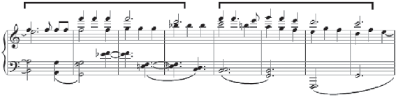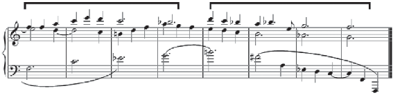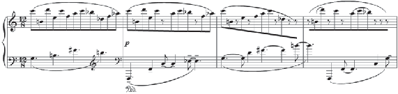 Exemplo n.4: Sonata n. 10 para piano de Almeida Prado, Ideia 1, 1º mov., c. 1-2.