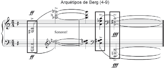 Exemplo n.7: Sonata n. 10 para piano de Almeida Prado, Arquétipos de Berg, 1º mov., c.3-4.