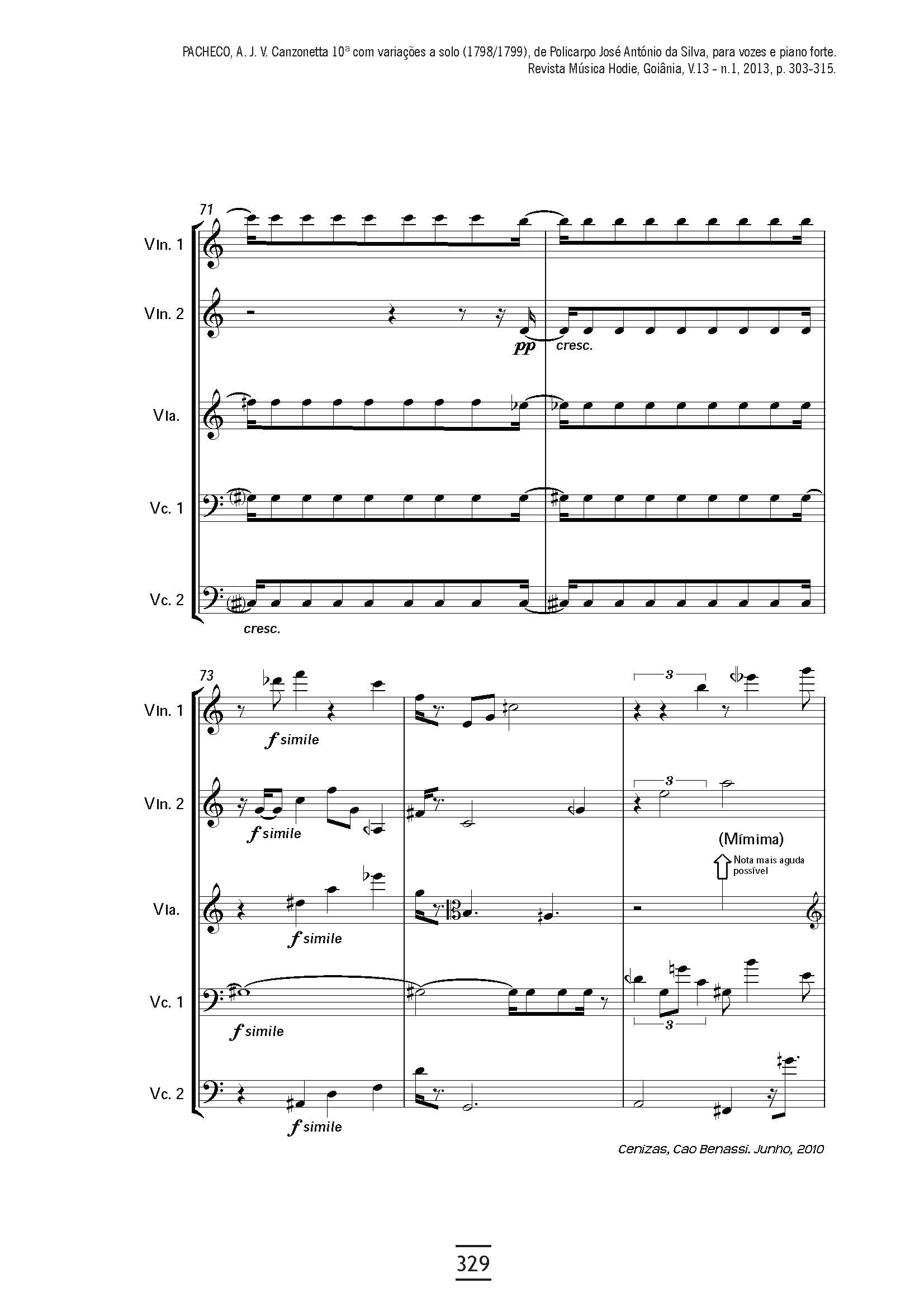 PACHECO, A. J. V. Canzonetta 10ª com variações a solo (1798/1799), de Policarpo José António da Silva, para vozes e piano forte. Revista Música Hodie, Goiânia, V.13 - n.1, 2013, p. 303-315.