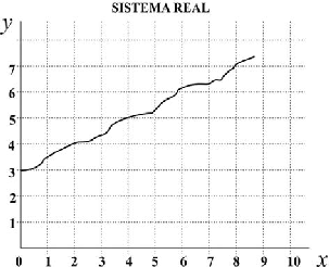 No Gráfico 1a, observa-se uma curva construída a partir dos dados produzidos por um sistema real qualquer. Supõe-se aqui uma dependência da variável contínua y com re- lação à variável contínua x. Neste caso, se x for tempo e y energia, estaremos representando um sistema onde a energia aumenta com o passar do tempo.