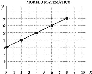 No Gráfico 1b, observa-se a representação de uma modelagem matemática, que re- produz, satisfatoriamente, este sistema real. A curva relativa a este modelo é construída a partir da função linear y = ½ x + 3, determinada por um procedimento de tentativa e erro. Desta forma, mesmo sem reproduzir literalmente, em nível microscópico, a curva de dados do sistema real, o modelo matemático simula sua tendência ascendente (inclusive com in- clinação similar) e a dependência entre as variáveis, contendo até mesmo diversas coinci- dências de valores, como por exemplo, para x = 2, y = 4, tanto no sistema real, como no mo- delo matemático. Além disso, a equação nos permite determinar a situação de y para valores futuros de x que não estão explícitos na amostragem de dados do sistema real. Este mode- lo matemático é dinâmico (supondo que o eixo das abscissas representa o tempo), contínuo (porque as variáveis são contínuas, ou seja, não ocorrem por incrementos discretos) e de- terminístico, porque, além de se poder determinar estados futuros, não faz uso de variáveis aleatórias próprias de modelos probabilísticos.