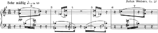 Figura 5: Sete compassos iniciais das Variações para Piano, Op. 27, de Webern.