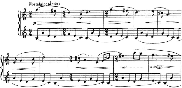 Figura 10: Gestos iniciais do Ponteio Nº 18, de Camargo Guarnieri, onde se observa o uso de ostinato na mão esquerda do piano.