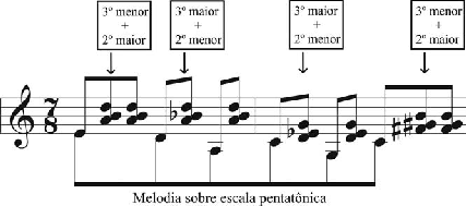 dades: [016], [025], [027], [0157], [0268], [0358] e [0158]. Estas podem ser livremente alterna- das com funções harmônicas tonais (diatônicas ou cromáticas) e acordes alterados, gerando ambiguidade no discurso harmônico.