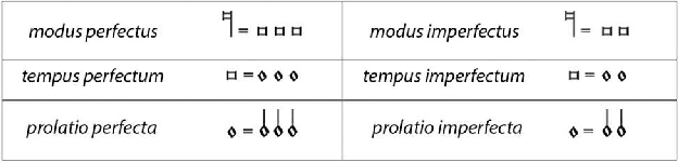 Figura 2: Mensurações perfeitas e imperfeitas da longa, brevis e semibrevis.