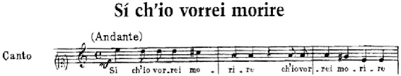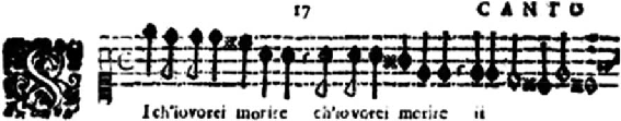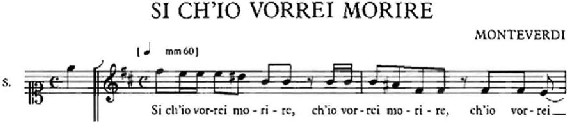 Exemplo 1: Início do canto do madrigal Sì, ch’io vorrei morire, de Claudio Monteverdi (MONTEVERDI, 1615,