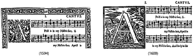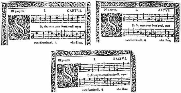; da mesma forma, na edição de 1593 de Canzonets or Little Short Songs to Three Voyces o cantus está escrito em
