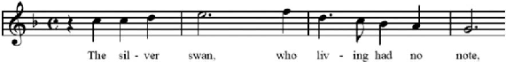 Exemplo 8: Trecho do bassus do madrigal Fair Phyllis, de John Farmer (FARMER, 1599d, fol. Dv).