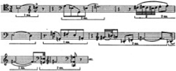 Um exemplo extraído da parte do violoncelo da “Serenade” de Pierrot Lunaire Op.