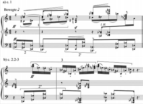 Exemplo 3a e 3b: Schoenberg, Op. 11, No. 3; c. 1; e c. 2.2-3.