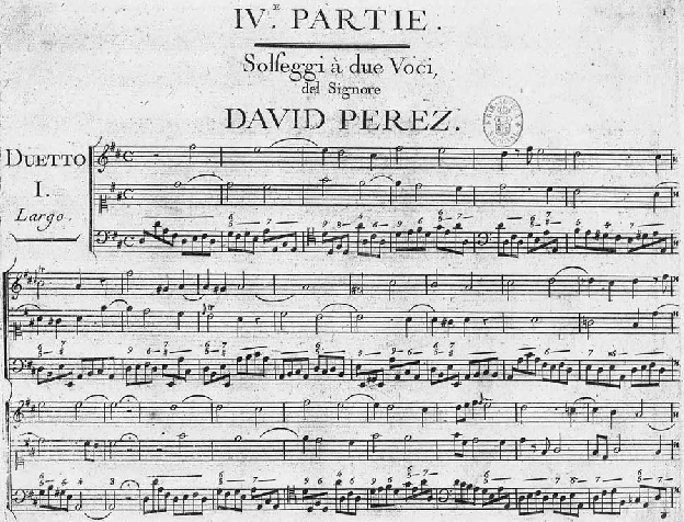 &c. (Paris, 1768)11. Este conjunto de 12 duetos de David Perez constituem a quarta e última