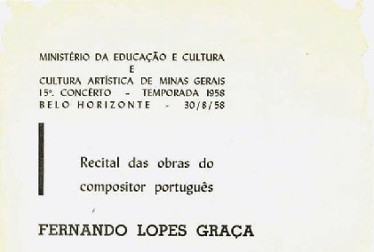 Figura 2: Capa do programa de concerto realizado em Belo Horizonte, exclusivamente com obras de Lopes-Graça.