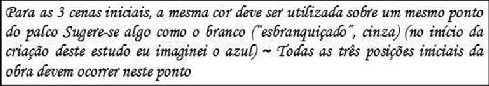 Pouco a pouco, a luz também surge devagar. Você começa a aparecer, na posição 1, à direita do palco (em relação à platéia)