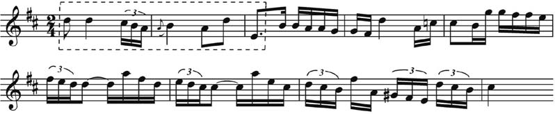 A escolha de fragmentos de motivos, ao invés da utilização integral, deveu-se simplesmente a uma recomendação de Quantz, que condena a repetição demasiada de intervalos ou figuras, o que poderia causar certa monotonia.