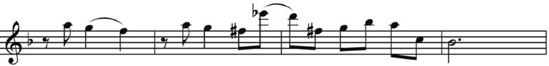 ᆳᆳto, transposto. A escolha dos dois fragmentos deveu-se a várias razões: a) ambos são contrastantes – o primeiro mais enérgico e enfático, devido às notas repetidas; o segundo, retirado de um motivo bem mais expressivo, ᆳnos incisivo que o primeiro; aqui observamos que teria sido muito óbvio usar o início do segundo motivo no segundo fragmento. Assim, optou-se ᆳcolhido está bem no início da peça enquanto o segundo no meio, ambos ᆳᆳto, seguindo as recomendações deste autor, será agradável ouvir mais uma vez o primeiro motivo da peça e uma parte do motivo ”doce” do meio do movimento.
