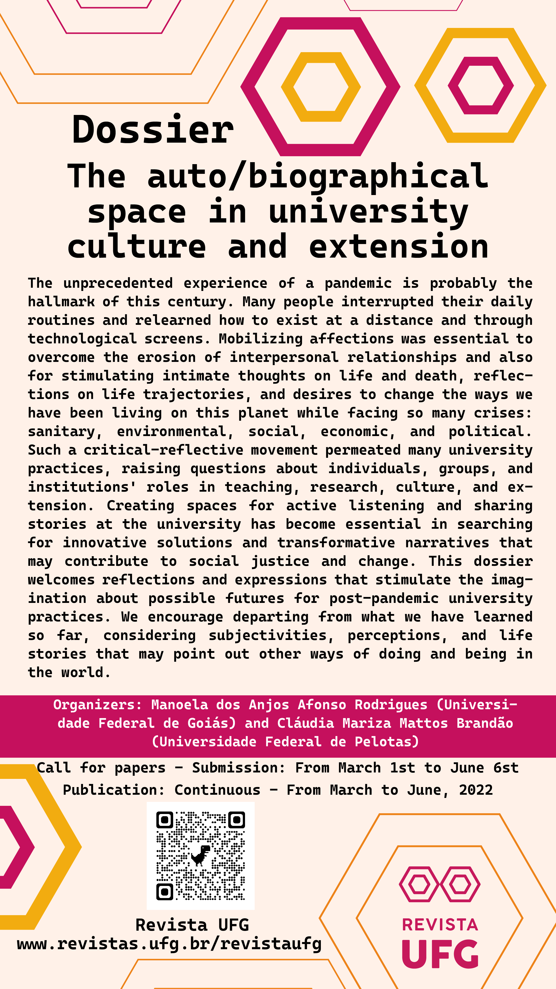 O Dossiê O espaço auto/biográfico na cultura e na extensão universitárias foi prorrogado para o dia 16/06/2022 para submissão final de artigos e trabalhos científicos.