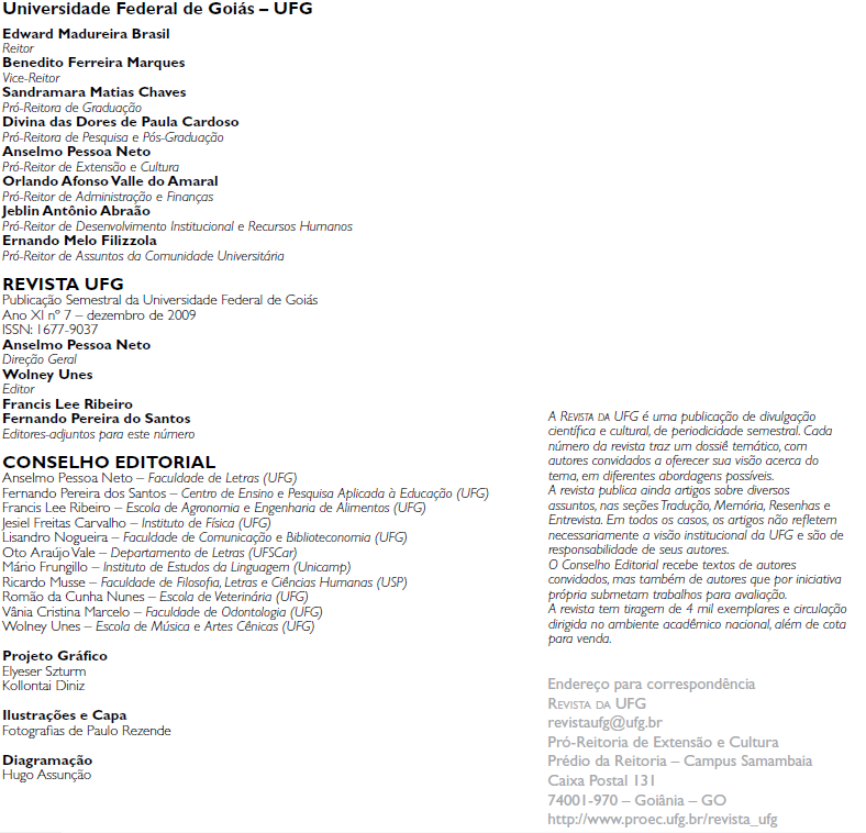 3) Os autores dos trabalhos publicados na Revista UFG são expressamente responsáveis por seu conteúdo.