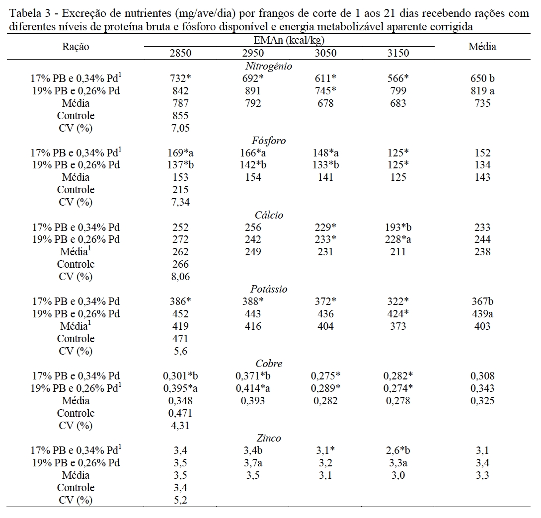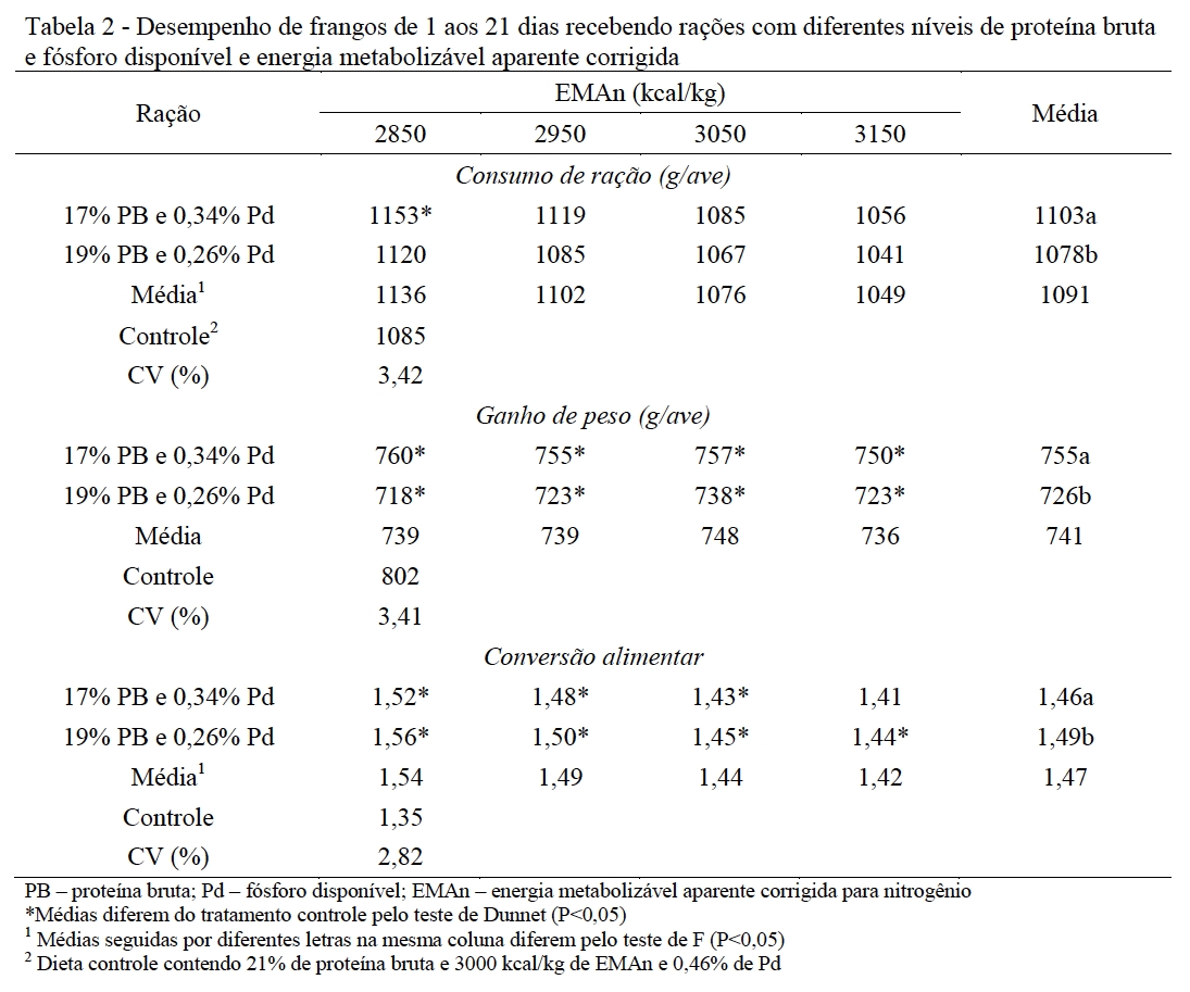 reduzidos de proteína bruta e fósforo disponível, formuladas com