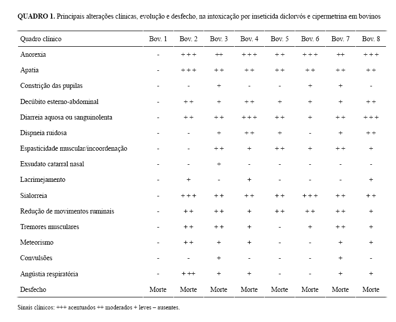 DICHLORVOS AND CYPERMETHRIN POISONING IN BOVINE IN MATO GROSSO STATE/BRAZIL – CASE REPORT