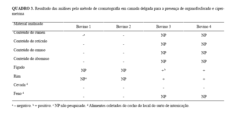 rins dos bovinos 3 e 4. As amostras, enviadas ao Laboratório de