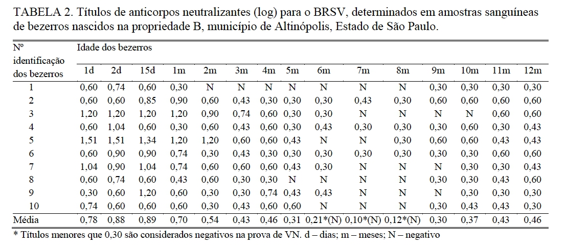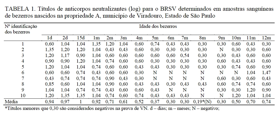 monitoramento sorológico de bezerros foi demonstrada a atividade fluente da