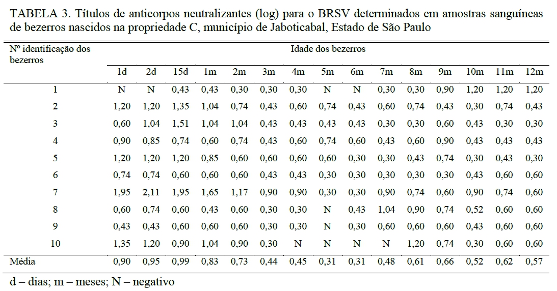 títulos de anticorpos em bezerros até um ano de idade. Devido a isso, este