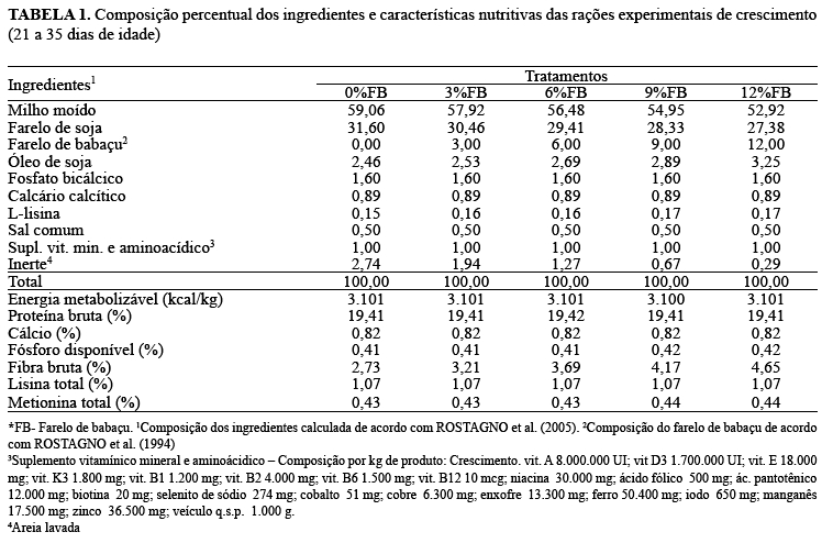 Tabela brasileira para aves e suínos: composição de alimentos e exigências nutricionais. 2. ed. Viçosa: UFV-DZO, 2005. 186 p.