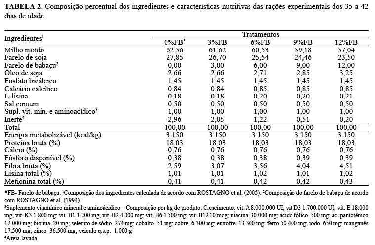 farelo de babaçu para frangos de corte dos 21 aos 42 dias de