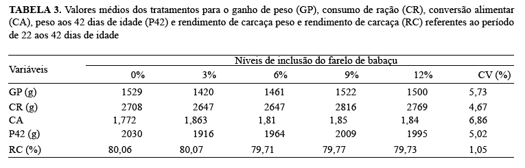 babaçu em dietas para frangos de corte dos 21 aos 42 dias,